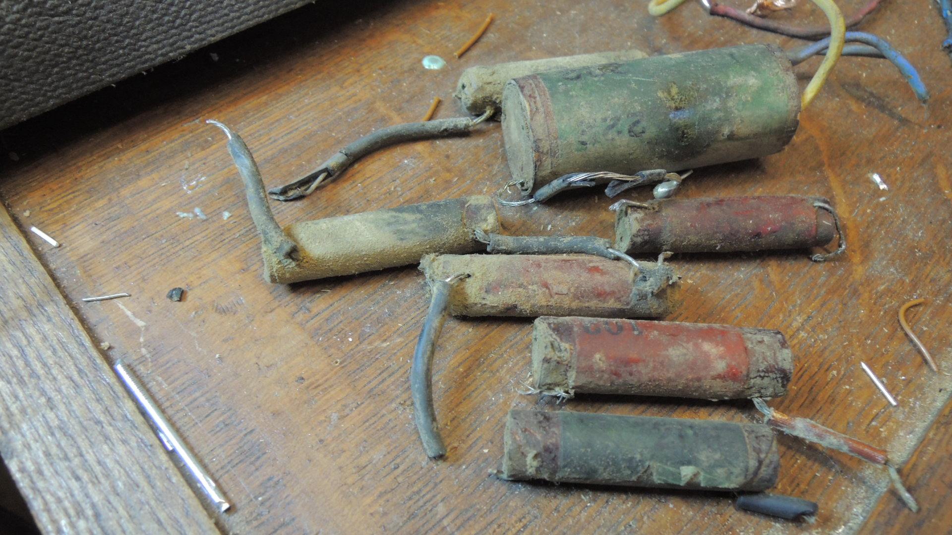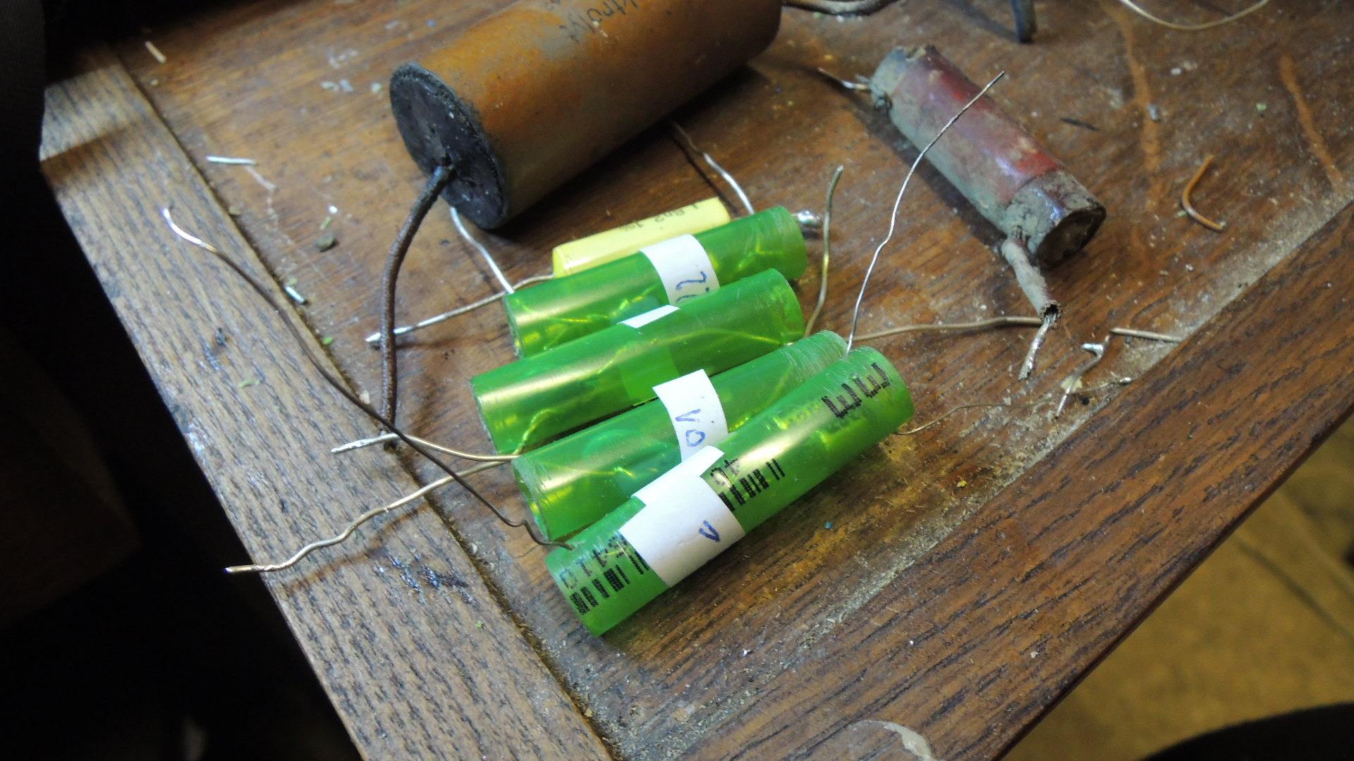 ist doch klar. Ich habe die modernen Kondensatoren in die Plastikröhrchen gesteckt, vorher die Drähte mit Silberdraht verlängert. Jetzt kommt da wieder Papier drum mit der Kondensatornummer. Dann sind die Dinger wieder wie original. Die Antriebsrolle ist für einen Fahrradschlauch zu klein. Sonst wäre das schon gut. Ich werde mal bei e... schauen. Meistens findet man doch da was. Aber ich werde nochmal ein schärferes Bild nachreichen.