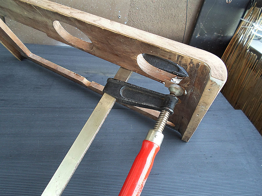 Ja, nach dem Kleben schneide ich das Furnier, aber senkrecht zu die Kante. Dann breche ich die kleine Segmente ab. Hier habe ich leider keine Fotos von dem Prozess gemacht, aber vor ein paar Jahre habe ich die bei Restauration Saba Gehäuse geknipst. Da ist deutlich zu sehen wie wird die überstehende Furnier angeschnitten.