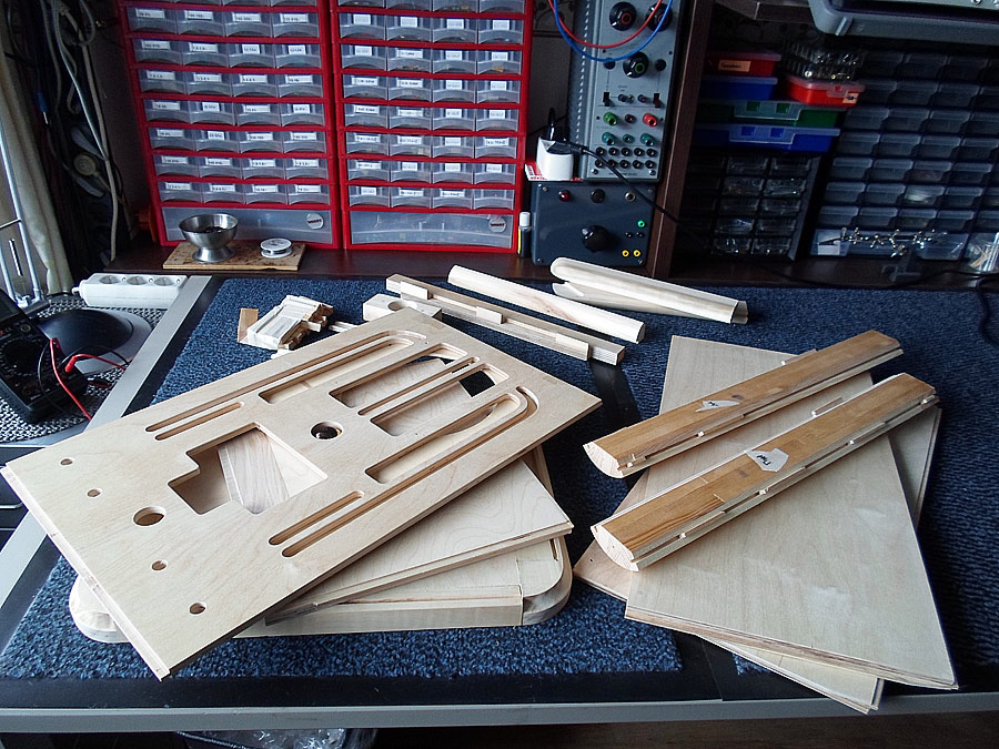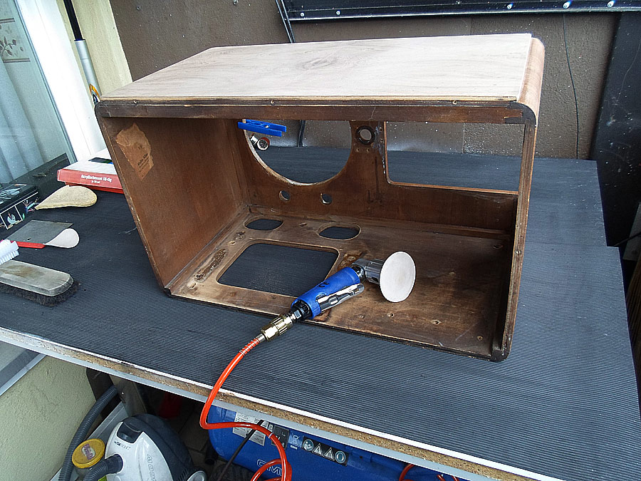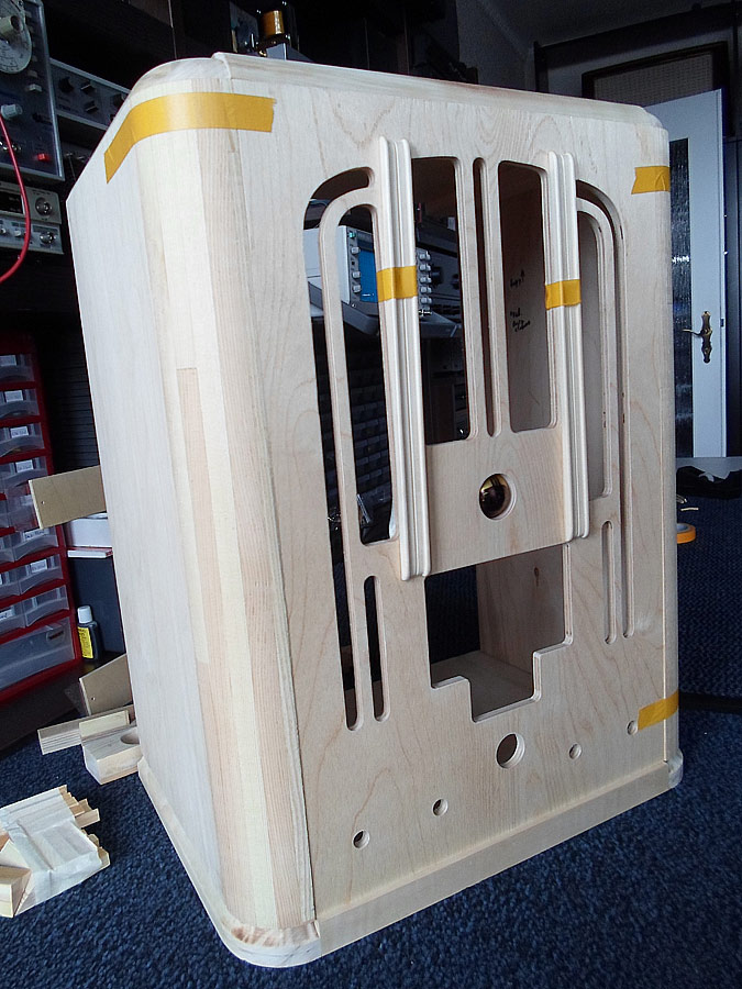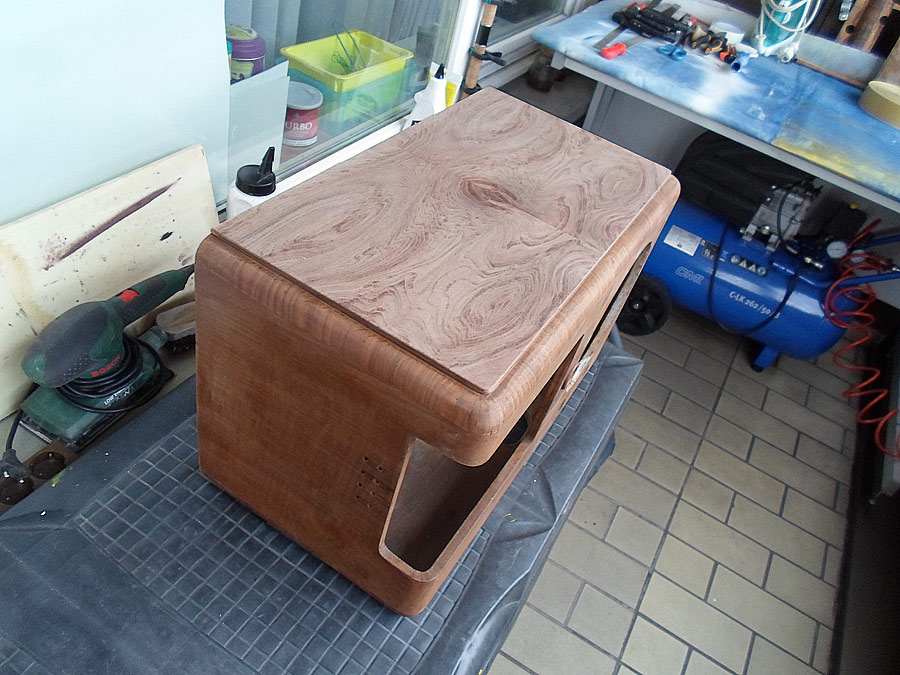 Vielleicht konnte ich wirklich die Gehäuse selbst bauen, aber mir fehlt da zu die Platz. Man muss schon eine kleine Werkstatt haben. Bei mir ist das ausgeschlossen, leider. Das wegen bestelle ich einige teile und bei Schreinerei und dann bau die Gehäuse schon selbst zusammen. Bei mir momentan läuft ein Projekt - eine Variation von Zenith Radios. Aber wann ich da mit fertig werde, keine Ahnung. Mir fehlt immer die Zeit und die Arbeitsplatz. So sieht das Gehäuse schon heute aus: