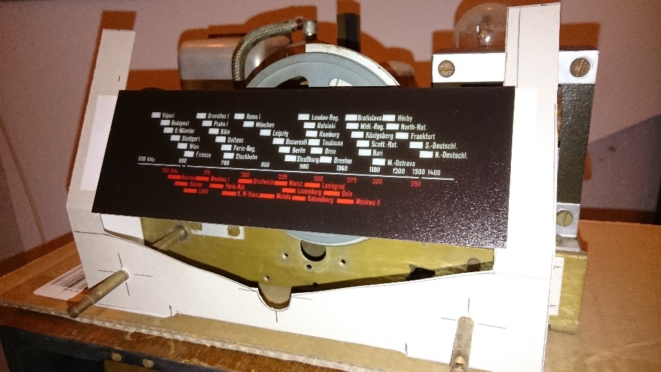 Nun kann ich aber nach langer Zeit einen kleinen Fortschritt vermelden. Ich habe endlich eine Skalenscheibe gedruckt bekommen. Habe mich für eine weisse Plexiglasscheibe entschieden, damit die Kästchen authentischer hinterleuchtet werden. Ich hoffe es auf jeden Fall. Ohne das Foto von Herrmann, wäre ich nicht soweit gekommen. Er hat leider das Hobby aufgegeben. Das ganze jetzt nur mal so zusammengesteckt, damit man sieht, wie es etwa werden soll und man sich daran erfreuen kann. Für mich ein großer Schritt. Jetzt muss ich die Pappschablone in Blech umwandeln und die Maße korrigieren.