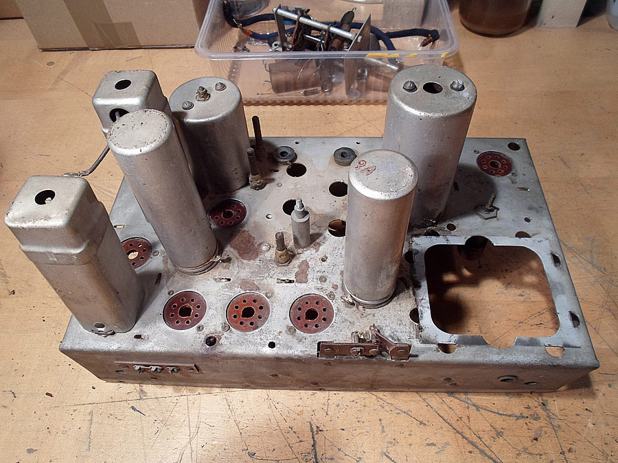 Du sollst dem Abbeizer so auftragen, das er kommt nicht auf Unterseite des Chassis und auch nicht auf die Bauteile, besonders auf die Spulen. Das ist nicht schwer, weil Abbeizer ist wie eine Gelee, nicht flüssig, nur sparsam auftragen. Nach dem abbeizen brauchst Du nichts abwaschen, nur mit Kittmesser die abgegangenen Lack abnehmen und mit Ethanol gut alles abwischen. Mann soll das alles natürlich mit Gefühl machen und vorsichtig.