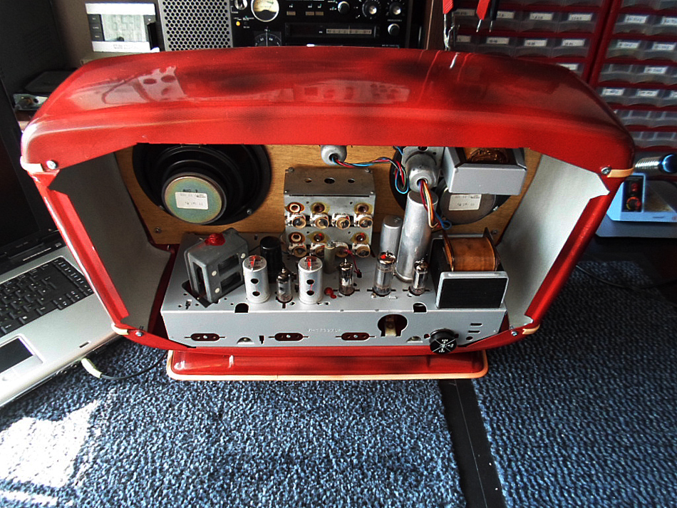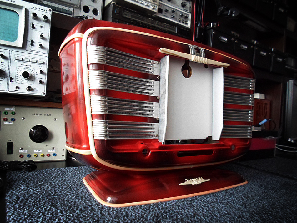 aber das ist keines Stereo Radio. Ich sage noch mehr, als Radio ist das Gerät gar nicht gut. Was kann man für Akustik erwarten von eine eisen Gehäuse? Die zwei Lautsprecher, das war ein Versuch das Ton möglichst besser zu machen. Das Radios ist nur optisch interessant, sonst übel.