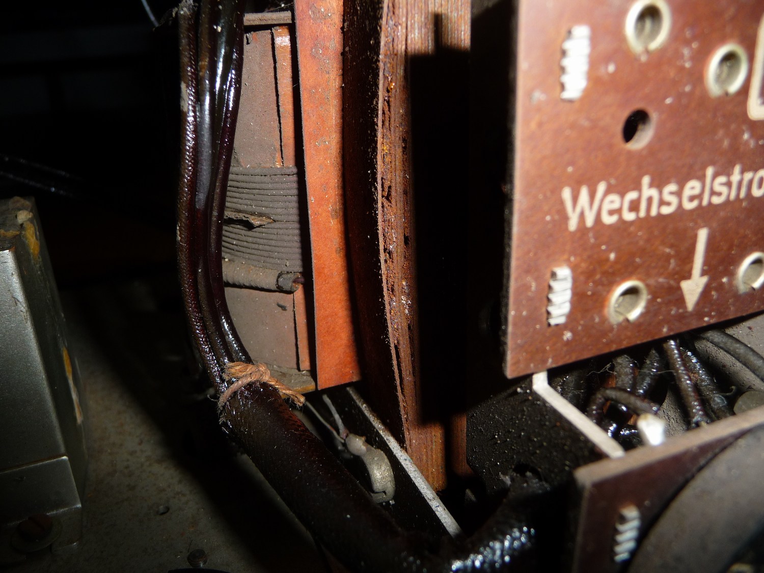 Der Netztransformator hat wohl am meisten Feuchtigkeit abbekommen, jedenfalls hat er beschlossen seine Bleche heftig rosten zu lassen: