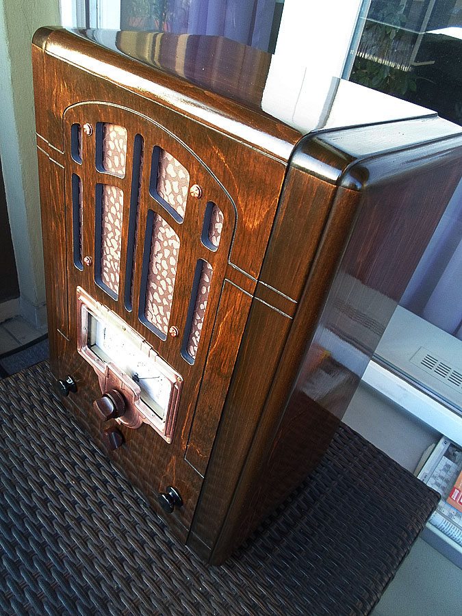 ja das ist immer eine gute Frage - was heißt Restaurieren. Und ich denke das sind zwei Wege, ein mal das so machen, das der Gerät wie gestern von Geschäft siet aus und zweite - das Gerät soll alt aussehen, aber in einem sehr gutem Zustand. Das muss man jedes mal entscheiden. Wenn das Radio hat Chassis mit Rost und abgeblättertem Lack, dann muss das auch neu lackiert, und vorher natürlich, komplett auseinander montiert werden. Wenn das Gehäuse hat stark beschädigter Lack, dann lackieren u s.w. Der Fahl war grade bei mir mit dem 6N1. Ich habe neues Lack auf Gehäuse drauf gemacht, aber so das man siet, das dass ein altes Gerät ist. Ich habe das extra mit Schellack gemacht, ungefähr 40 Schichten. Ich konnte natürlich, mit Pistole, eine oder zwei Schichten von einem modernem Lack drauf machen und fertig. Aber dann war es nichts - Nachbau Radio. Genau so, z.B. waren alle Kondensatoren nachgebaut, die sind optisch wie originale. Ich musste das auch machen weil die waren zu 90% alle kaputt. Bei dem Radio siet man noch genüg Gebrauchtsspuren und Schrammen. Aber es gab auch Fehle, wo ich habe das Gerät als ganz neu hingebracht. Ein Beispiel: