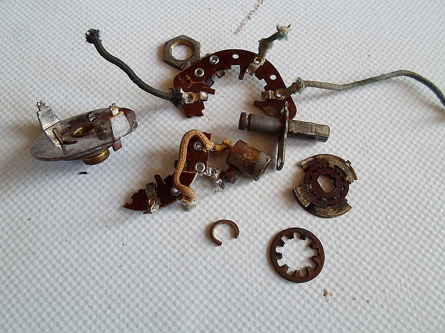 ich nehme an, du hast das zerbrochene Pertinax mit 2-Komponenten-Epoxid-Kleber geklebt und zusätzlich noch kleine Pertinax-Stückchen zur Verstärkung daraufgeklebt. Hast du die Stahlschrauben wieder mit Phosphorsäure entrostet? Ich hätte nie gedacht, dass so ein Schrotthaufen wieder wie neu aussehen kann.