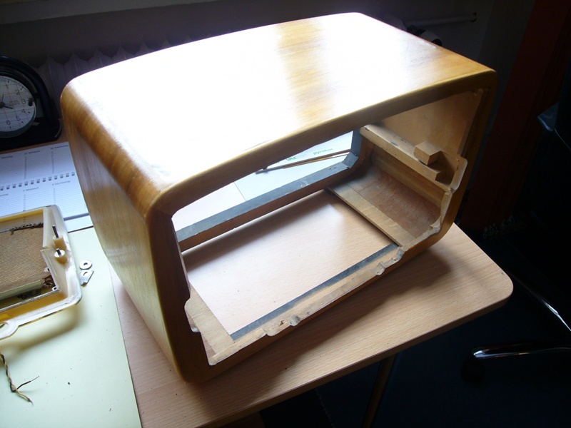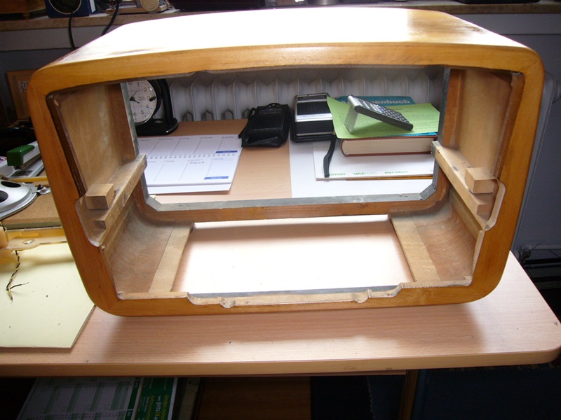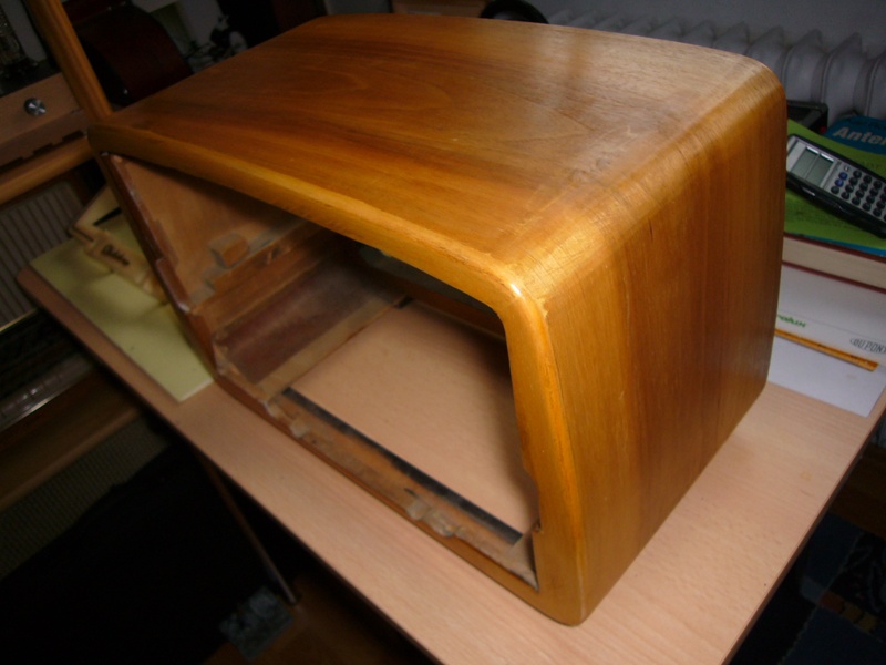 Hier hatte ich eine Elektra von Nordmende. Da war der Lack ganz ab. Ich hatte 2 Möglichkeiten. Patinieren (schattiert von hell und dunkel, oder hell lassen. Ich habe mich für die Natur Methode entschieden. Diese ist einfacher, da keinerlei Patina, Beize benötigt wird.