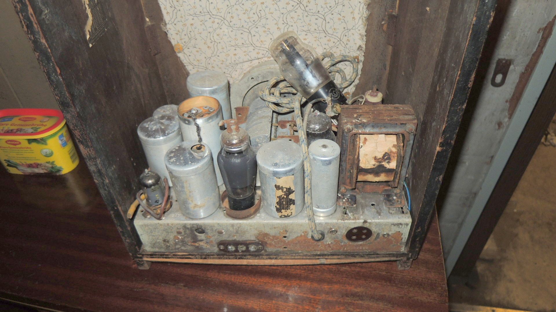Keine einfache Aufgabe, wie sich herausstellte. Von den Röhren fehlte die 80 (Gleichrichterröhre) und die 2A7 ist durch eine Rimlockröhre ECH42 ersetzt.