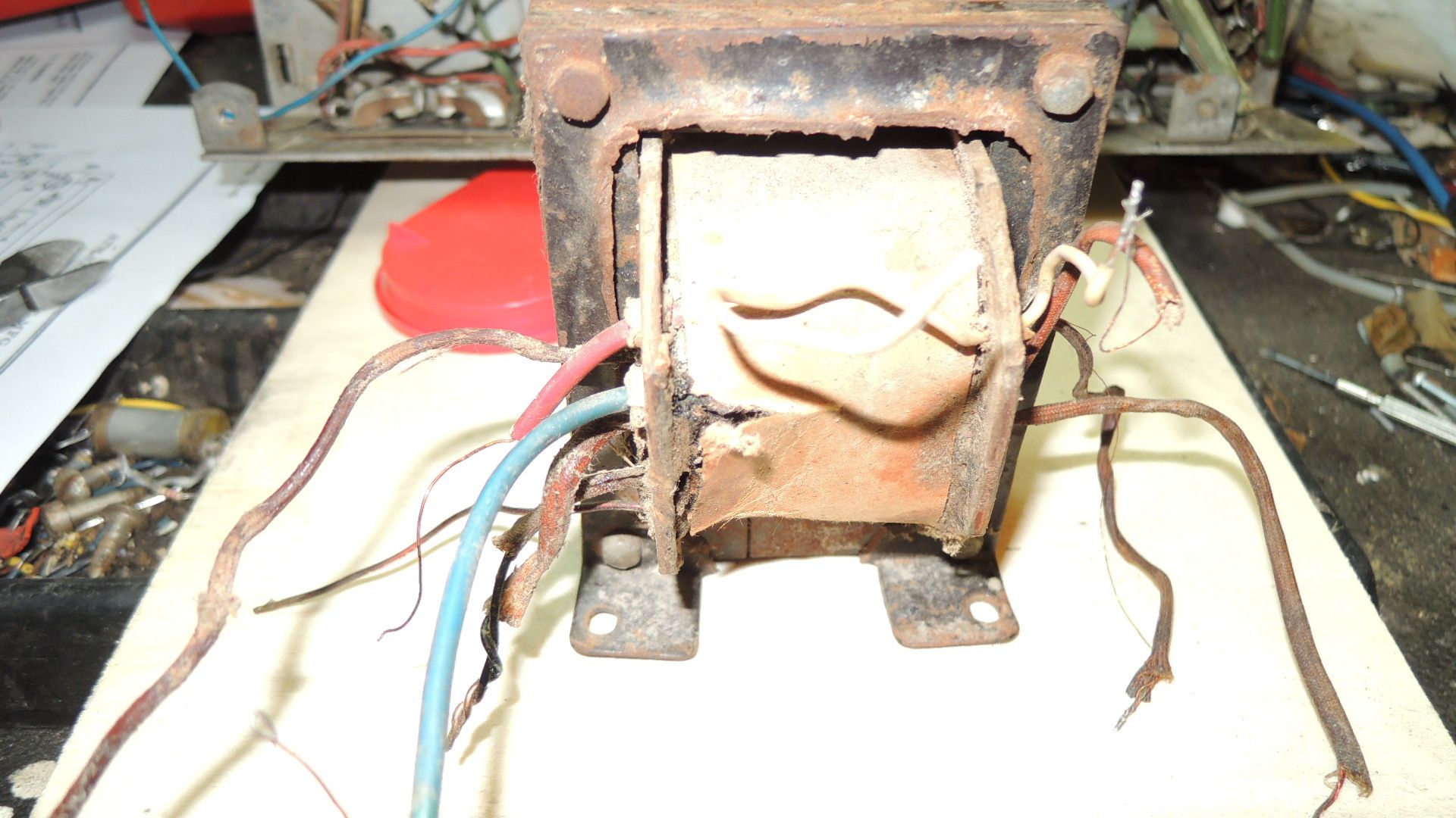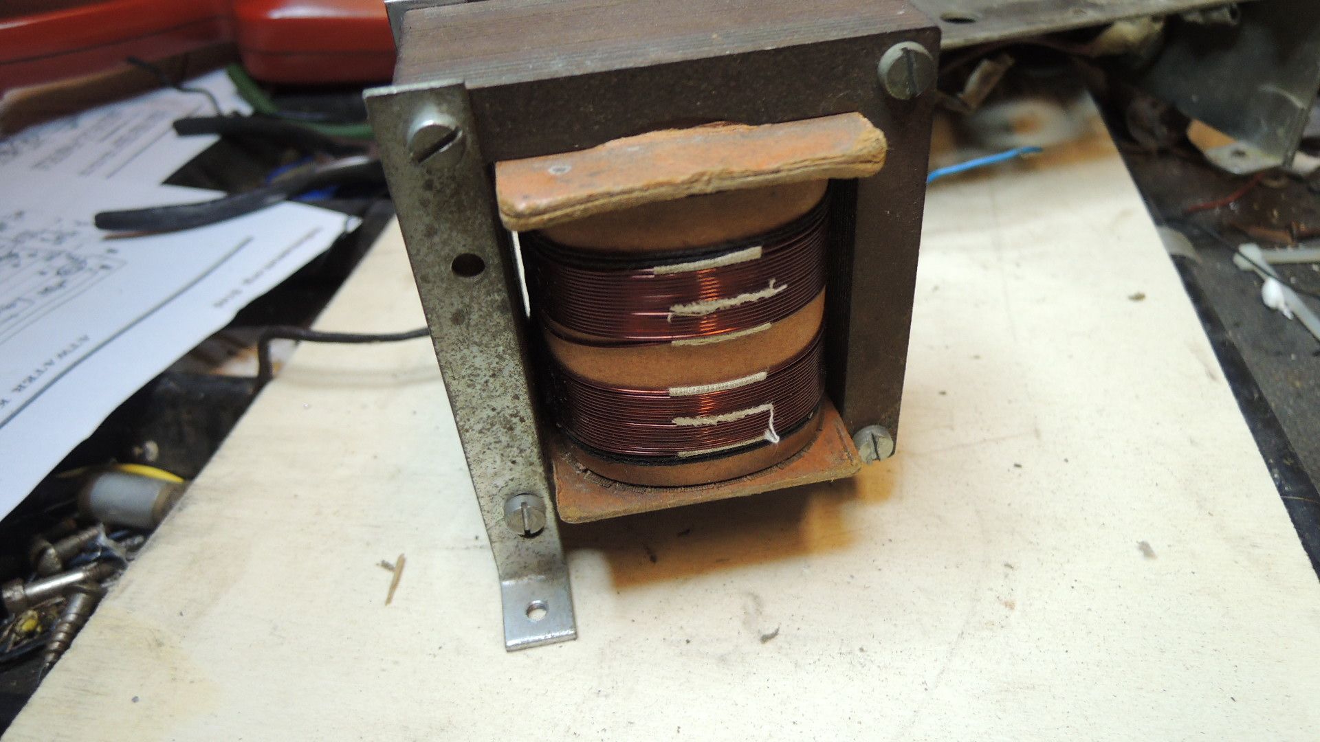 ja, das mit dem Trafo wird wohl keinen Zweck haben. Das ist so ein vermurkstes Ding und auch nicht original. Der stand nur auf dem Chassis. Wunderte mich eh, dass der beim Versand nicht das ganze Radio zerscheppert hat. Wie schon geschrieben, habe ich einen Trafo, der wohl mit den Abmessungen in etwa hinkommt. Hier werde ich die Heizungswerte ändern durch Abwickeln der Windungen. Gleichrichter 5 Volt und 2,5-3 Volt für die Röhren. Das Schöne ist ja, dass die Heizwindungen außen liegen.
