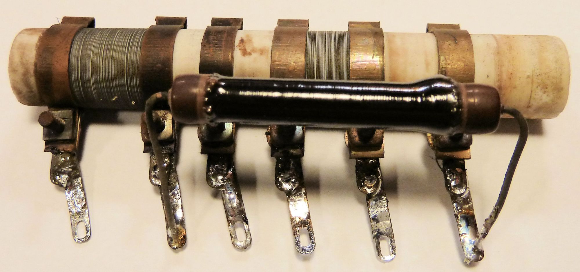 danke für die schnelle Antwort, sie geht aber leider ein wenig am Thema vorbei. Der Widerstand sieht so aus, wie auf den beiden angehängten Bildern. Es ist ein kombinierter Vorwiderstand für sowohl die Röhrenheizung (U-Röhren, UCH42, UF41, UBC41, UL41, UY41) als auch für die Anodenversorgung. Zu allem Übel ist das Gerät auch noch ausgelegt für den Betrieb an 110 V, 127 V und 220 V DC/AC, so dass der Widerstand mehrere Abgriffe hat. Zwei Widerstandswicklungen sind "verdampft", der Rest noch vorhanden...