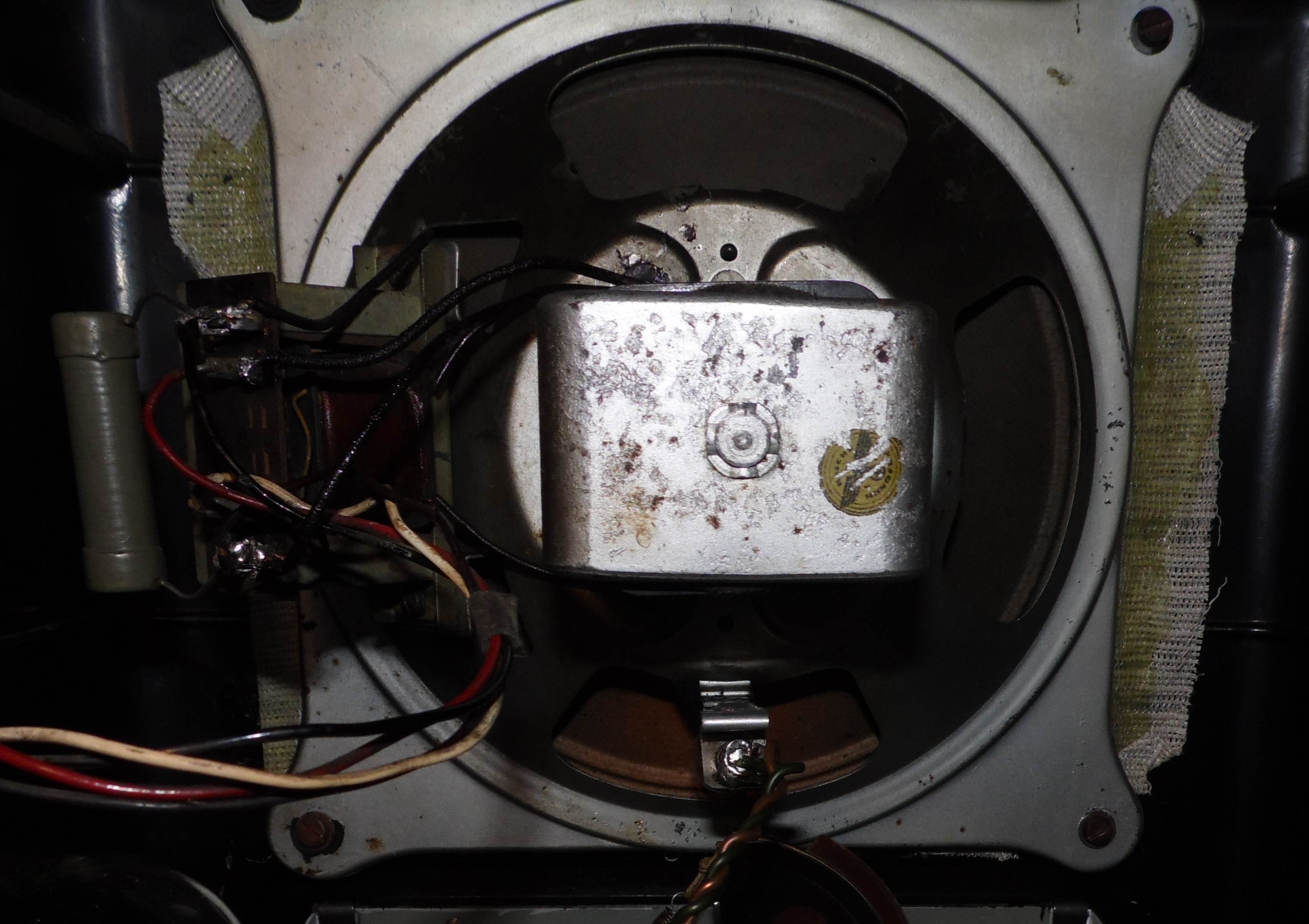 Der Lautsprecher war noch ganz brauchbar, er hatte zwar ein paar risse, aber das war kein großer Aufwand diese zu Reparieren. Dieser Kasten oberhalb des LS ist ein Kondensator. Der Vorbesitzer hat ihn dran gemacht, aber warum, das weiß ich nicht.
