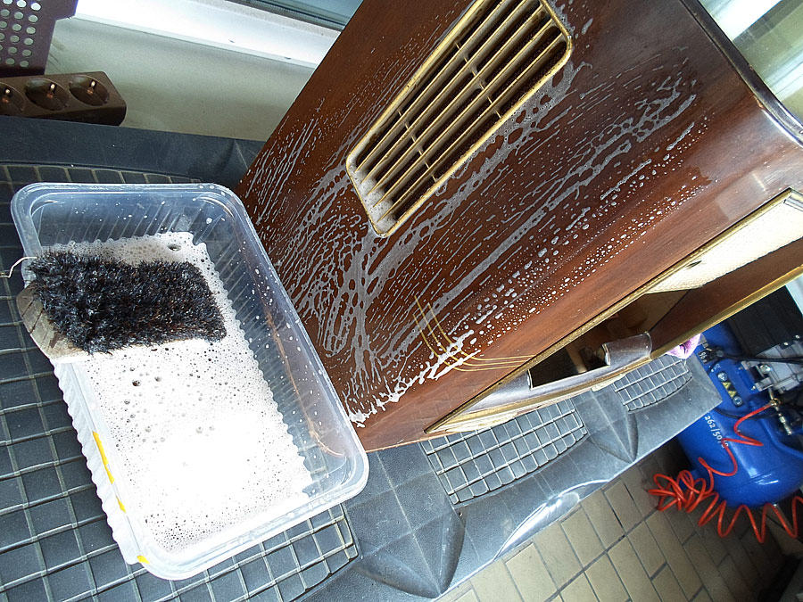 Und alles gut waschen und sauber machen, bevor man fängt überhaupt mit Reparatur und Restauration an.