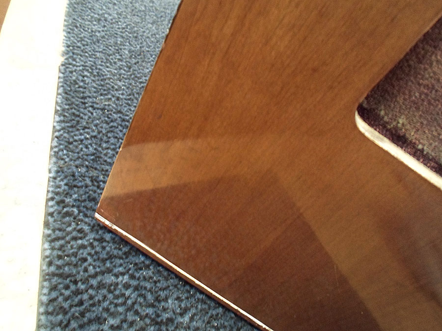 Das wird natürlich noch weiter gespachtelt und geschliffen. Die Lackschicht, oben, war nach Vertonung auch angeschliffen. Dann nochmals vertont und wieder mit Schleifpapier drüber gegangen.