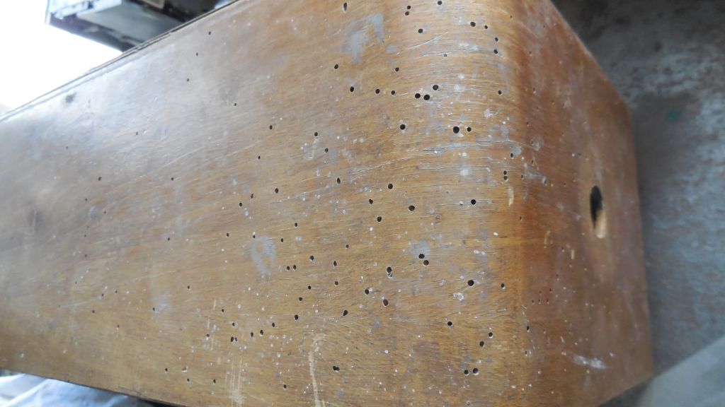 also wenn mein Gerät nach der Behandlung so perfekt aussehen würde wie das vom Friedrich, das wäre fantastisch. Ich bin aber auch schon zufrieden, wenn die Eingänge des Untermieters (fast) nicht mehr zu sehen sind. Der Wurm hat es auch noch geschafft, dass sich sogar das vordere Holzteil abgelöst hat. Das wird aber wahrscheinlich kein grosses Problem sein. Ich werde es vermutlich mit (wasserfestem) Holzleim kleben können. Das Problem, was ich jedoch befürchte, ist die fehlende Maserung der Spachtelmasse. Auf dem Dachboden meines alten Hauses gibt es allerdings auch eine Menge an Wurmlöchern. Wenn ich wieder zu Hause bin, werde ich am Dachstuhl meine Versuche machen. Erstmal vielen Dank für Eure Ratschläge.