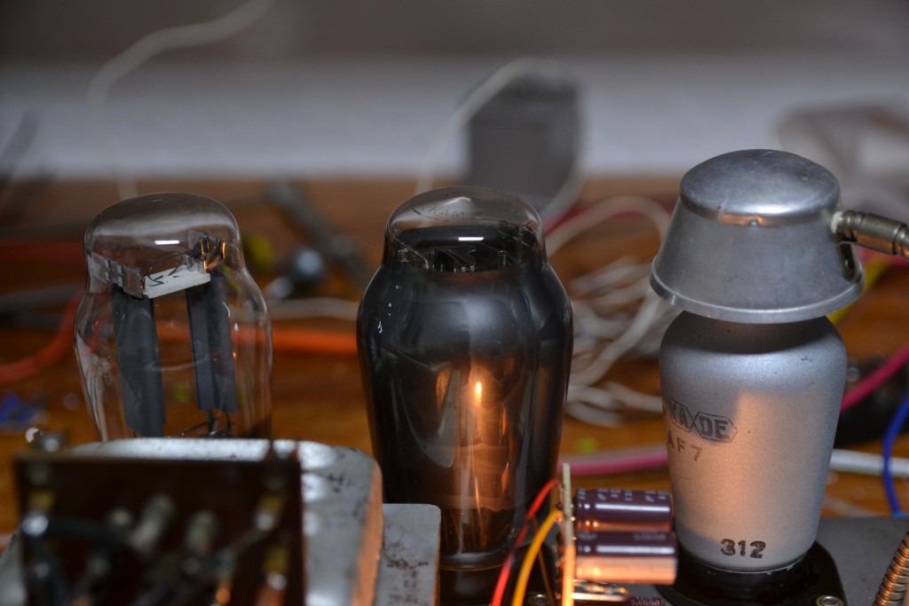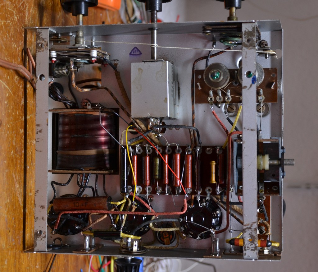 Zunächst fiel auf, daß in der Audionstufe statt der versprochenen AF7 eine AF3 ihren Dienst tat. Hier war offenbar nach einen Röhrendefekt kein passender Ersatz verfügbar, und die pinkompatible AF3 war wohl besser als garnichts - Regelkennlinie hin oder her.