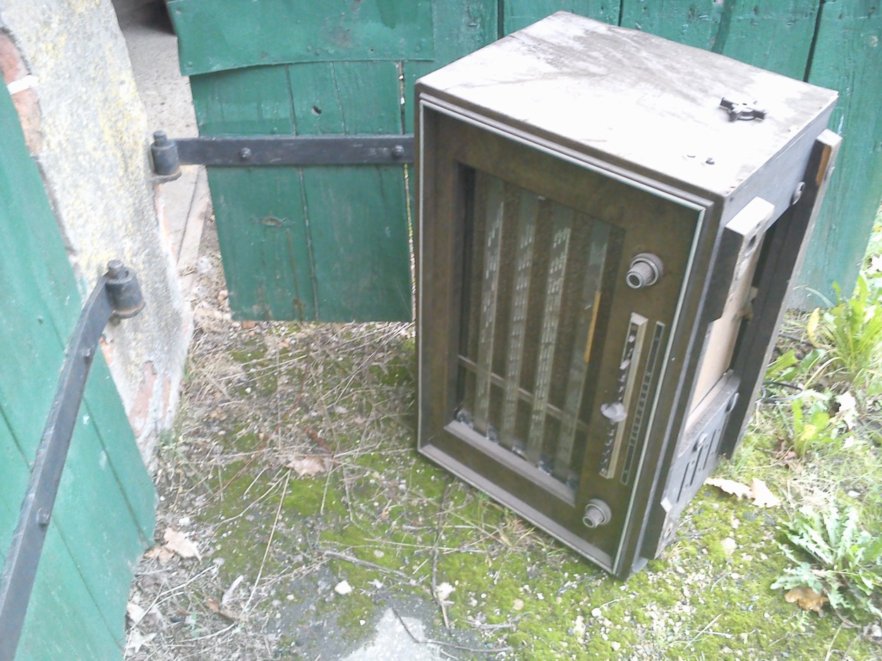 Nun aber zum Telefunken: Aufgefunden habe ich es in Berlin vor einer Garage, wo es schon einige Zeit stand, in etwa so :