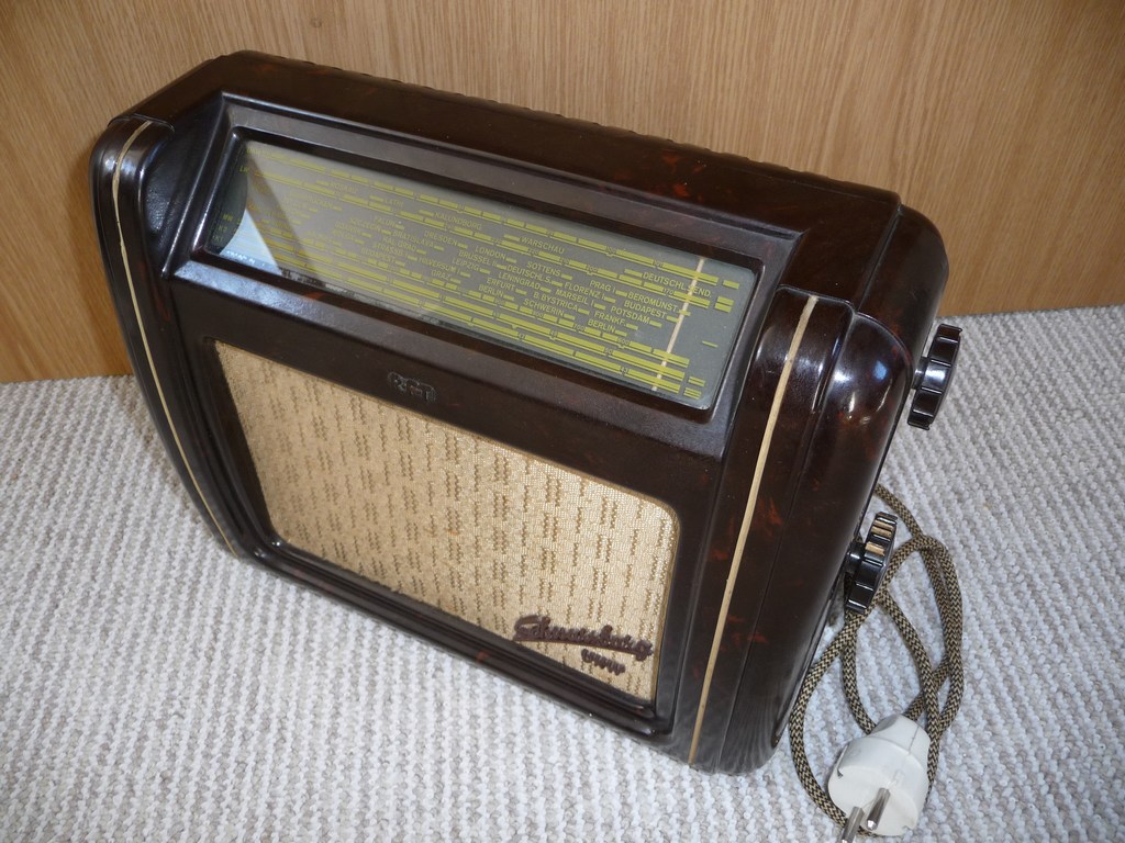 Mir ist letztens in der Bucht ein Schwarzburg "zugeschwommen" Wie das bei mir wohl immer so ist, wollte ich ihn zuerst nicht so unbedingt. Allstrom, Dunkles Bakelit und die Form waren eigentlich nicht so mein Ding. Aber hauptsächlich dachte ich wohl: "Du kommst mir als Übungsobjekt für die Restauration des "Telefunken D860WK" gerade recht...". Und in mein "Sammelgebiet" passt ehemalige DDR doch eigentlich perfekt... Da er auch in mein Budget passte, habe ich ihn gekauft und einige Tage später ist er gut verpackt angekommen: