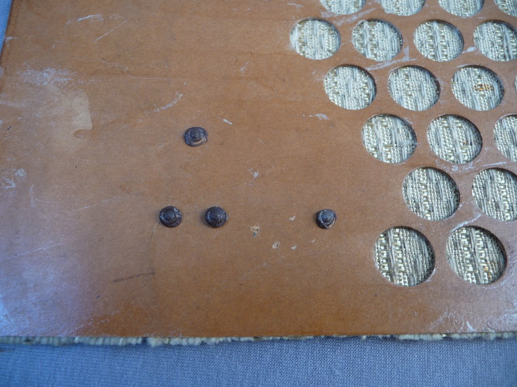 Ich glaube nicht, das der Lautsprecherstoff schon mal gewechselt wurde, die "Schmelzvernietung" der beiden Schriftzüge sieht recht original aus. Aber möglich ist natürlich alles. Hier mal zwei Fotos: