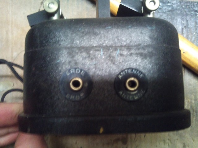 das auf dem ersten Bild ist kein Detektor-Empfänger. Dem widerspricht schon alleine die Beschriftung "Rückkopplung". Es deutet wesentlich eher auf einen Vor-, Sieb- oder Selektionskreis für ein einfaches Audion hin. Vermutlich waren an den Kabeln Stecker mit welchen man dieses Gerät mit dem Radio verbunden hat.