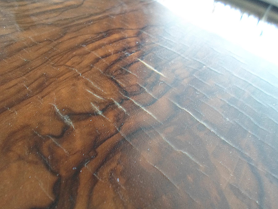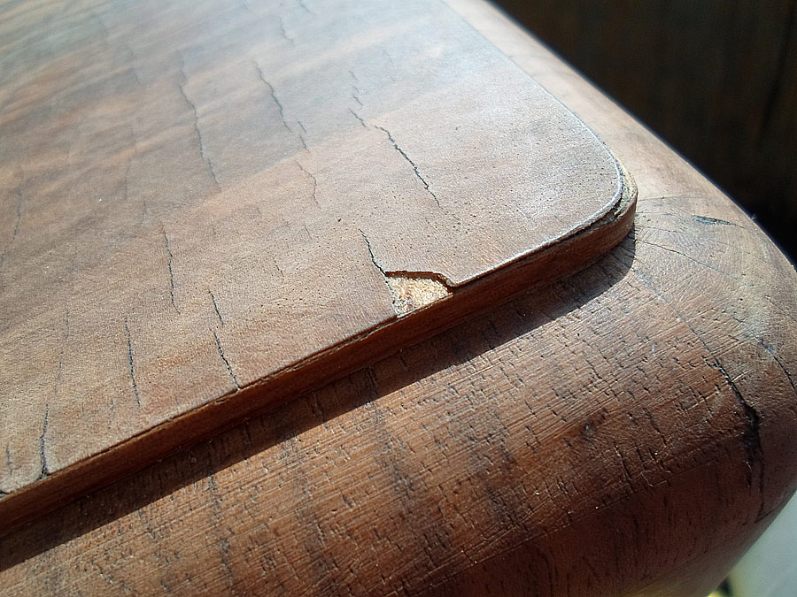 Es war nicht nur der Lack, sondern auch das Furnier ist kaputt. Das bedeutet, dass Gehäuse muss auseinander komplett getrennt werden.