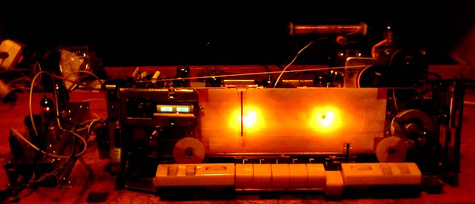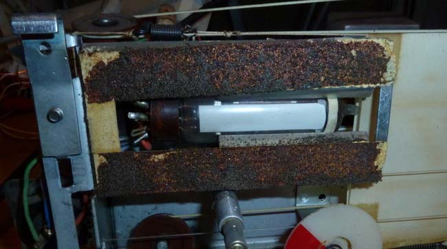 Die Skalenlampen haben schon einige Betriebsstunden... damit das neue Diffusor-Papier nicht wieder angeschwärzt wird, habe ich sie etwas zurückgebogen, so dass sie das Papier nicht mehr berühren.