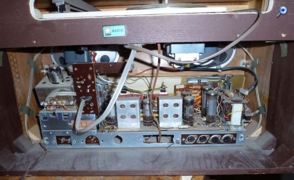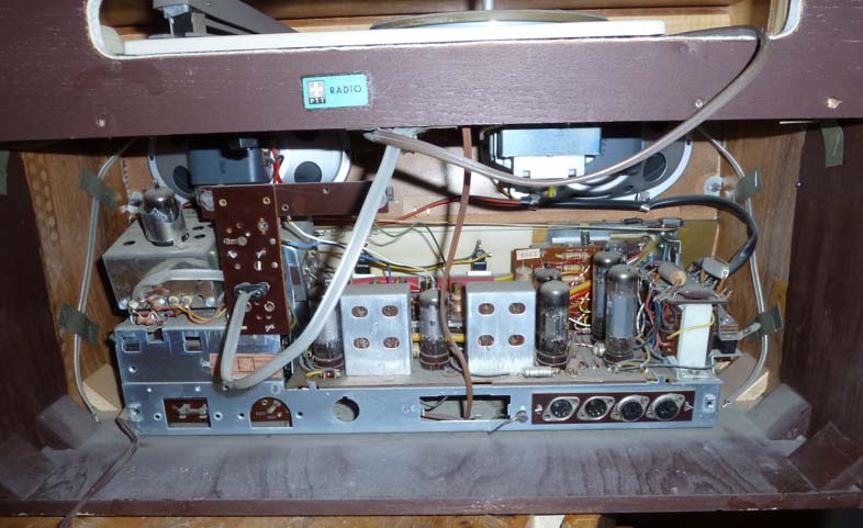 die Bezeichnung ist ausnahmsweise kein Problem, es ist das Chassis 3/616, dick auf der Rückwand aufgedruckt. Dieses ist der Nachfolger vom Chassis 2/616, die Unterschiede sind marginal: UKW geht bis 104MHz (anders aufgebauter Tuner, aber dieselbe Schaltung), zusätzlich noch eine Anschlussbuchse für den UKW-Stereodekoder. Der Rest ist identisch. Baujahr ist 1962/63, danach kam etwa 1965 die Version ohne EABC80 und mit den Gegentaktendstufen mit der ECLL800 oder als Low-Cost-Version mit der ECL86.