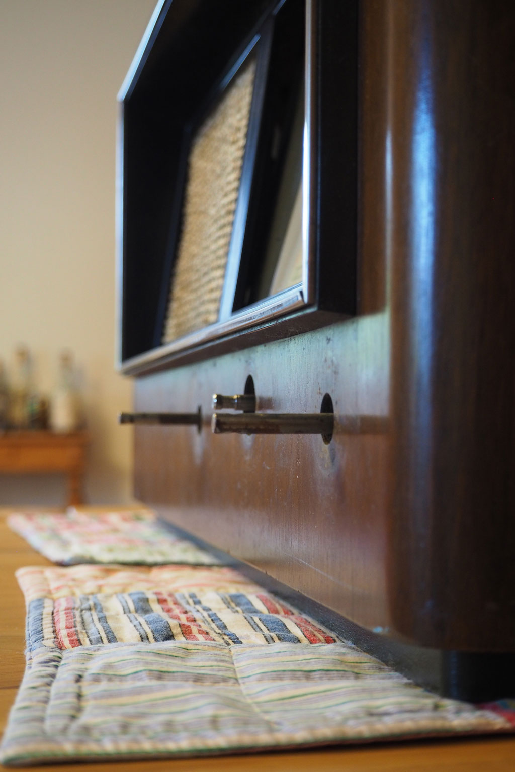 Ja jetzt, mit deiner weiteren Beschreibung kann ich mir vorstellen was du meinst. Ja......vielleicht hat jemand das Chassis ohne Gummiunterlagen zwischen Chassis und Holz wieder montiert nach einer Reparatur etc. Diese Formteile aus Gummi, oder Gummi-Scheiben mit Unterlagscheiben aus Metall etc. ,die vergessen worden sind und deshalb das Chassis nach hinten kippt und oben ein Spalt sichtbar wird? Sowas wird /kann es sein. Gummiteile können auch so hart werden, das sie zerbrochen sind und deshalb fehlen. Es kann genausogut auch ein Abdeckungstreifen etc. verloren gegangen sein. Dein Gerät ist ausserdem nicht für den deutschen Markt Heimhörer gewesen, da die Skale keine Sendernamen trägt und die Drehköpfe anders sind - oder die sind nicht mehr original.