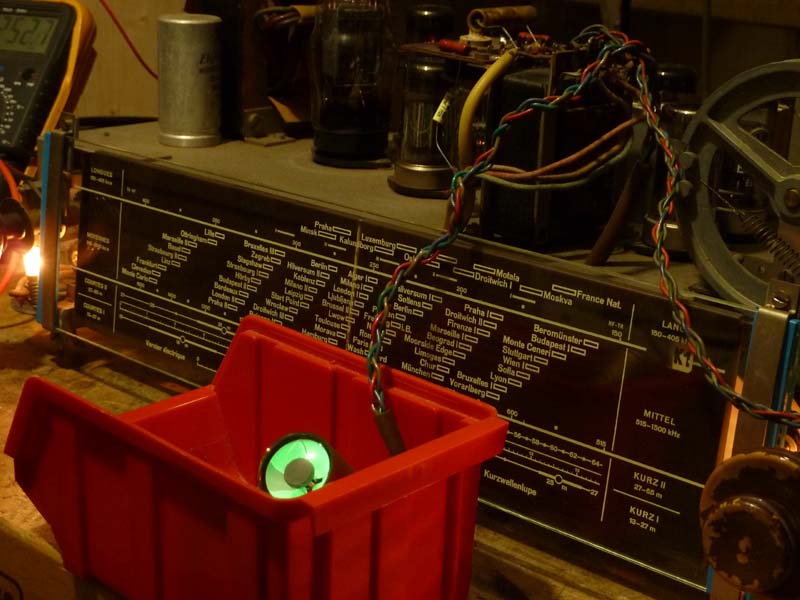 Der Oszillator machte beim hochfrequenten Kurzwellenband noch Probleme mit Pendelschwingungen. Hier war der Gitterkondensator schuld. Nach Ersatz funktionierte er einwandfrei.