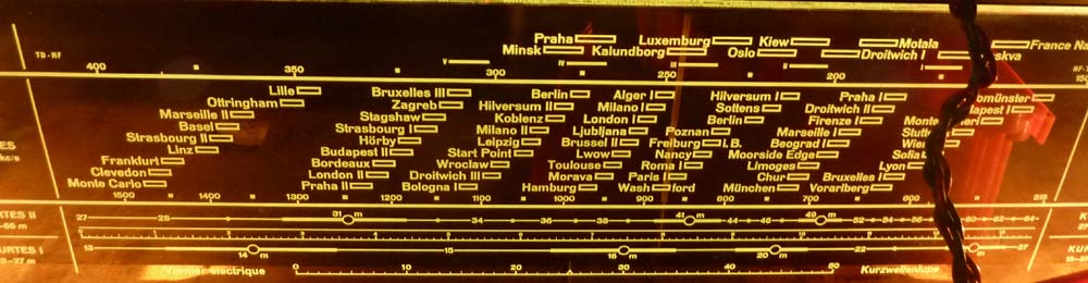 Hier noch die Skala im Dunkeln. Wie beim Biennophone 2066 wird die Skalenscheibe von der Seite her beleuchtet, so dass die Beschriftung leuchtet.