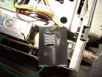 In dem kleinen Modul wird dann ein Datentelegramm geschnürt und über einen bis dato unebschalteten Pin der rückwärtigen Diodenbuchse im Frankfurt an das Handschuhfach geschickt. Dort empfängt eine "Kabelverdickung" das Telegramm und emuliert den Joystick.