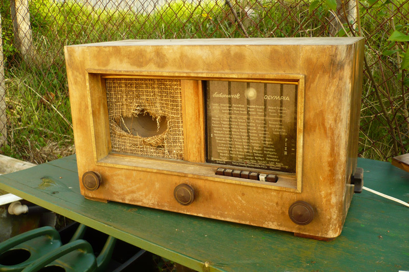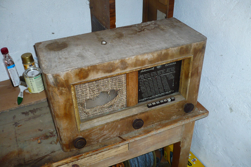 Ganz unerwartet zeigte sich in dem schrottigen Kasten dann auch sogar noch Leben. (Sah innen ähnlich aus, wie aussen) Allerdings kein Ton und dann später ein geknallter Kondensator.