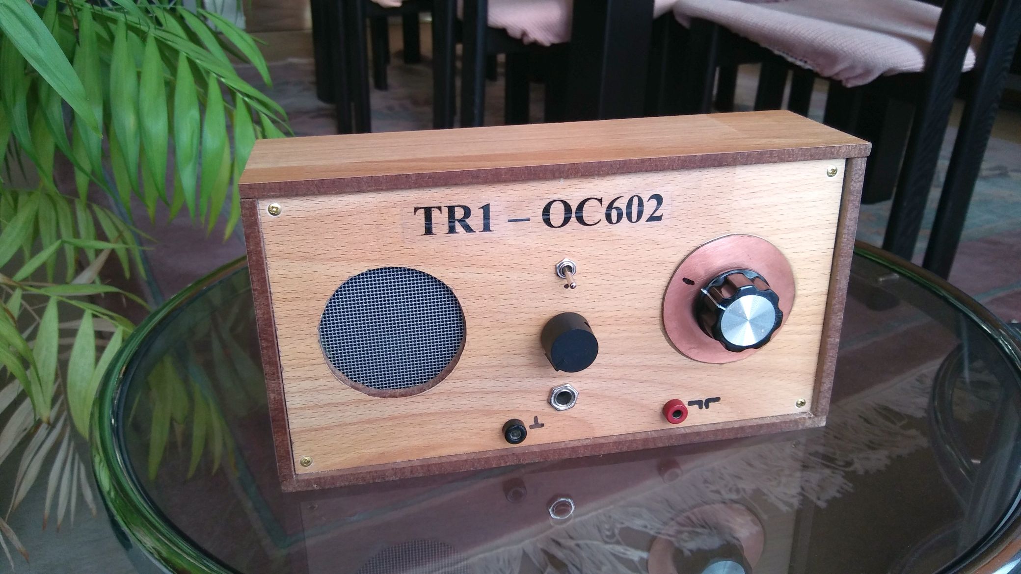 Zuerst wurde die Audio-Endstufe (bereits im Juni) in freier Verdrahtung eingebaut. Anstelle des OC604 wurde ein OC602spez verwendet, der bei unveränderter Dimensionierung des Basisspannungsteilers und Emitterwiderstands sehr gut funktioniert. Die Ruheleistungs- aufnahme liegt bei 50mW - von einem Klasse-A-Verstärker ist so verzerrungsarm kaum mehr als 20mW Output zu erwarten. Das ist keine überragende Lautstärke, aber ausreichend. Der damalige Funkschau-Artikel zur Einführung des TR1 Radios nannte eine Sprechleistung von 22mW. Für Kopfhörerbetrieb muss ich die Lautstärke in jedem Fall zurückdrehen.