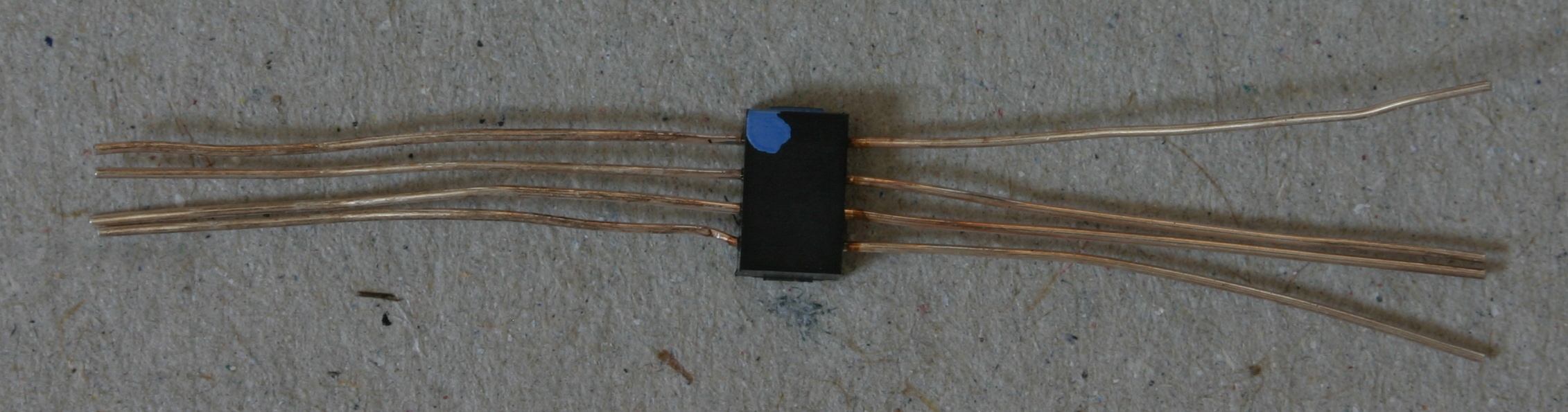 Da hast Du natürlich Recht, wenn die Drähte zum Gebrauchszweck nachträglich angelötete wurden. Frage ist ob es so vorher schon verwendet wurde oder der jetzige Eigentümer einfach nur die "Beine" verlängert hat, um die elktrischen Kennwerte, wie C oder R einfacher zu messen. So ist da natürlich als unbekannter Chip alles möglich vom Logikbaustein bis in den analogen Bereich hinein.
