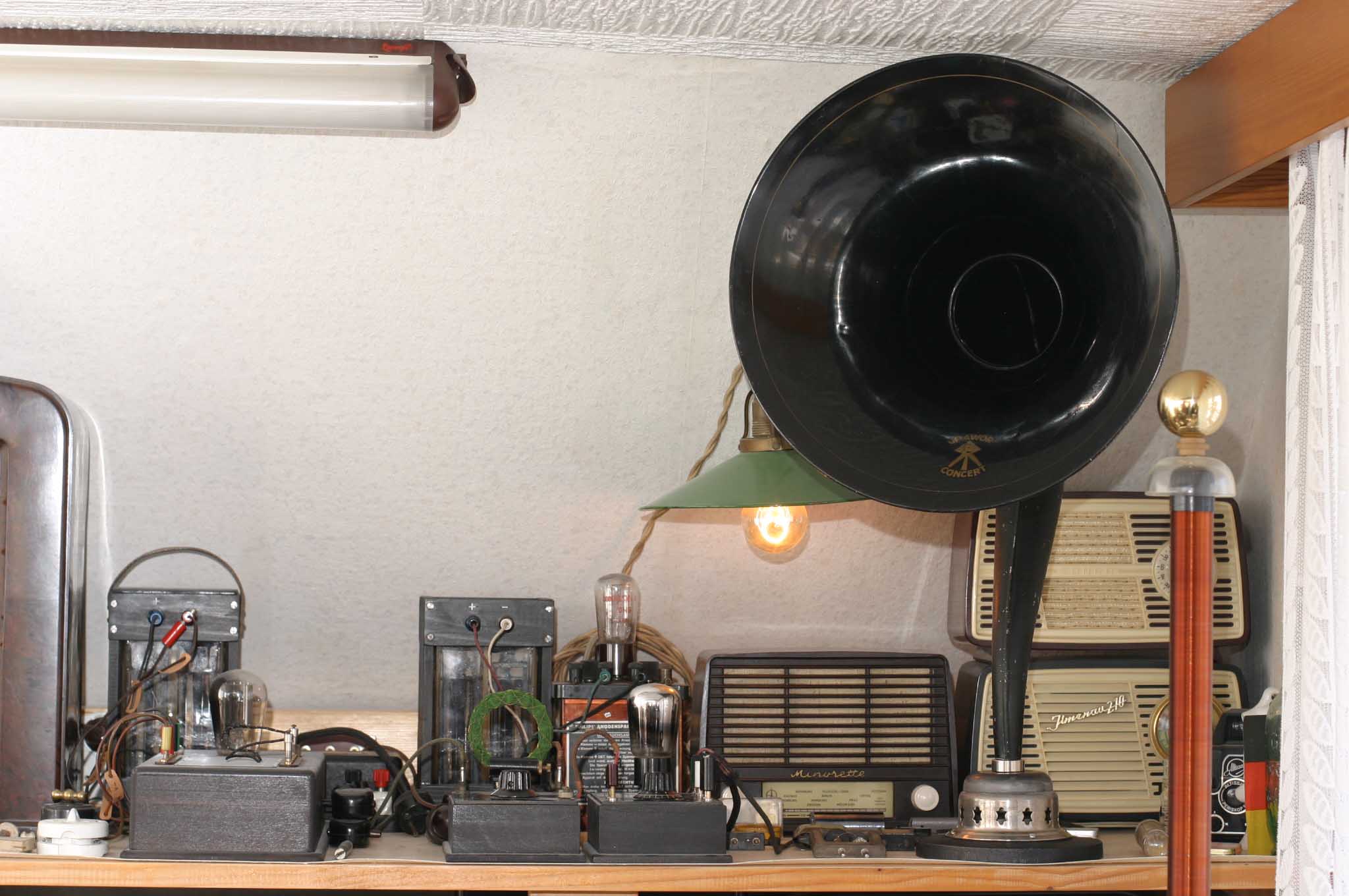 Hier ein älteres Foto Von Detektor , Verstärker und Lautsprecher nebst Heizakku und Netzanode