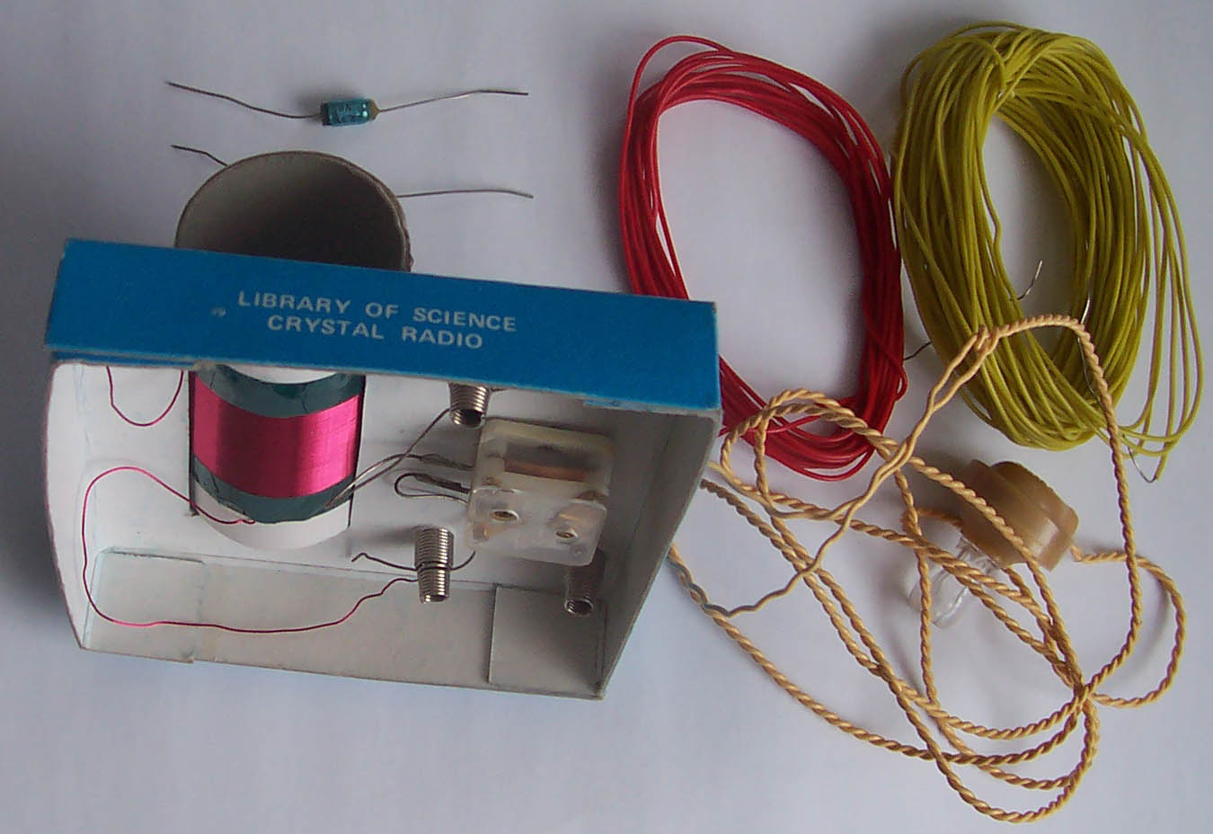 Hi, der Thread ist ja schon einige Jahre alt, aber ich kann hier etwas beitragen, vielleicht interessiert es ja noch jemanden: Das Set wurde Anfang der 1990er von der Firma Kosmos unter Lizenz der New Yorker Firma "NSI" angeboten und verkauft. Ich habe es damals geschenkt bekommen und aufgebaut und konnte damit den Ortssender empfangen. Im Haus meiner Eltern müsste es noch vorhanden sein. Der Lieferumfang entsprach dem oben gezeigten Foto. Aus der Reihe "Library of science" gab es noch weitere Kästen, ich besaß "Elektronik Start" und "Magnetzauberei". Im Kasten "Elektronik Start" gab es einen kleinen Verstärker, wo die Anleitung sich auf dieses Set bezog. Es war wohl eine Art zugekaufte "Low-Budget-Linie" von Kosmos. Laut einer im Netz kursierenden Preisliste wurde das gezeigte Set 1993 für 30 DM angeboten. Die Anleitung war, soweit ich mich erinnere, nicht besonders aussagekräftig, bei mir wanderte das Teil schnell in die Ecke.