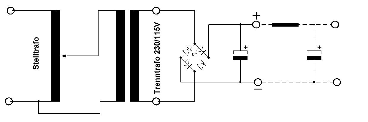 Ich habe einen Trenn-Regeltrafo. Für den Regelausgang hab ich mir ein "Kästchen" gebaut, in dem eine dicke Gleichrichterbrücke, ein dicker Elko, ein paar Buchsen sowie ein Volt- und mA-Meter stecken. Sprich, ich richte einfach die vom Trafo gelieferte Spannung gleich.