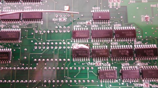 Dennoch war oberste Priorität, das Layout nicht zu beschädigen. Die Methode, alle vier Anschlussreihen im flüssigen Lötzinn quasi schwimmen zu lassen, bis das IC von der Platine fällt, funktioniert tatsächlich. Der DSP hat keinen Hitzeschaden davongetragen. Man darf nicht vergessen, dass durch die heutigen Fertigungsmethoden die Bauteile eine Menge Hitze abkönnen müssen.
