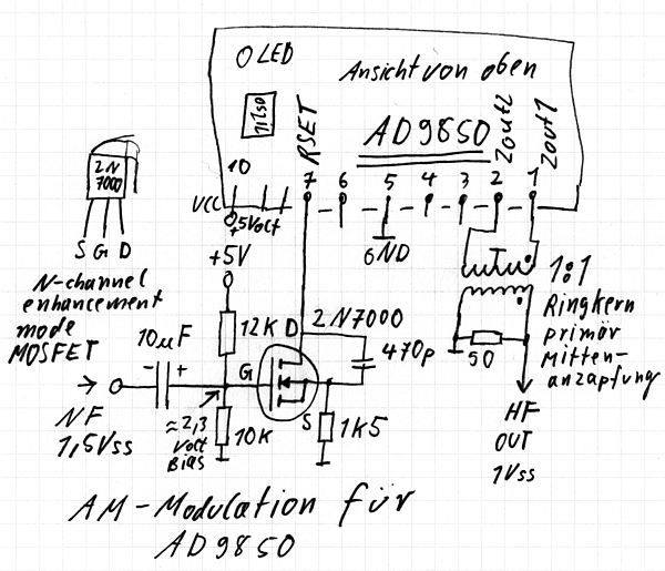mit ein paar Bauteilen kann der AD9850 auch Amplituden-Modulation: