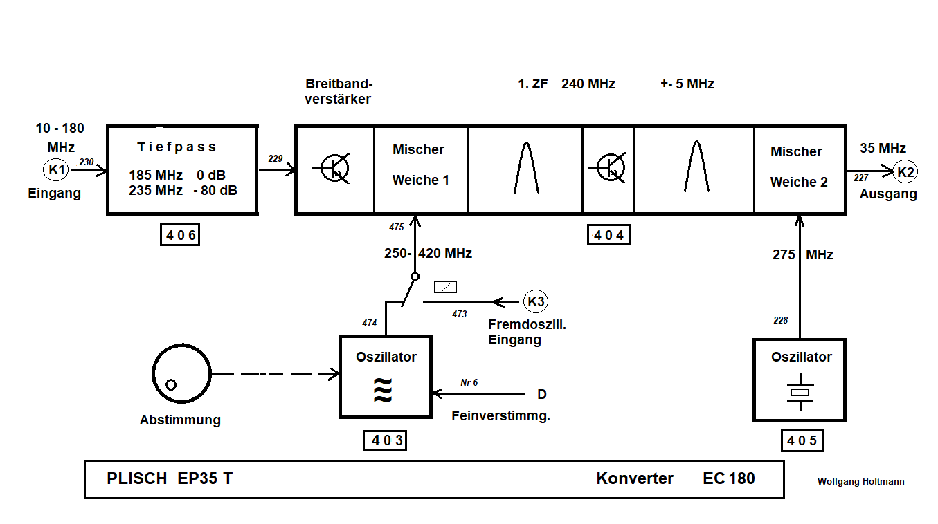 Nun gibt es von diesem Gerät mit den vier Einschüben (Konvertern) unterschiedliche Ausführungen, gemeint sind Modifikationen, welche nach der Einführung Anfang der 70er Jahre durchgeführt wurden. Die Seriennummer von meinem Grundgerät ist 4123 mit dem Einschub EC180/2 F Nr. 4072