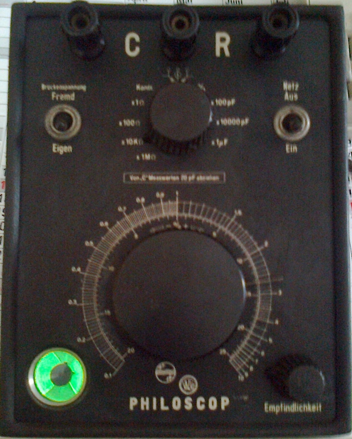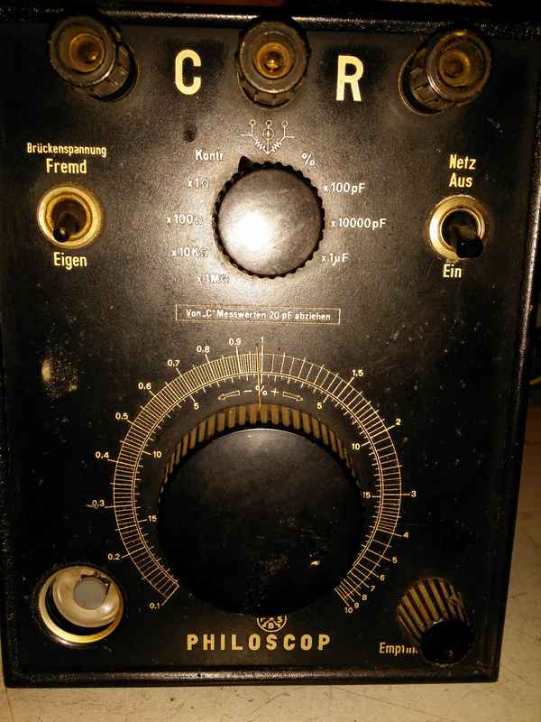 hier meldet sich Philoskop #3 mit der Seriennummer 31885. Keine Ahnung, wie alt es ist. Die ausgetauschten Elkos waren jedenfalls aus dem Jahre 1949. Zusätzlich musste nur noch die Anschlussschnur getauscht werden. Ansonsten ist das Gerät top in Ordnung und misst auch ziemlich genau. Das Magische Auge leuchtet hell. Würde ich es ausbauen und anbieten, hätte ich einen finanziellen Gewinn erzielt. Das wäre aber Frevel.