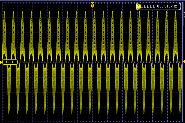 Was den Bauelementeaufwand betrifft, hast Du natürlich vollkommen Recht, an Einfachheit ist Deine Schaltung unschlagbar und die Funktion ist auch in Ordnung. Erstaunlich war für mich vor allem, daß keine FM Modulation erkennbar ist, wie dieses Foto beweist.