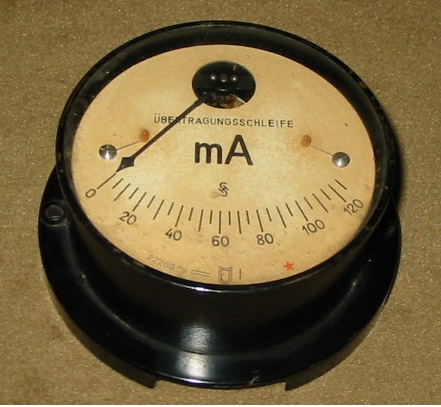 Ein Rätsel gibt mir das Wand-mA-Meter von Siemens & Halske auf. Mit ihm wurde offenbar ein Schleifenstrom von ca. 100mA überwacht. Hat jemand eine Idee, wo es eingesetzt wurde und aus welchem Jahrzehnt es stammt (1920'er? oder früher, denn die Firmengründung S&H Telegraphen Bauanstalt geht auf das Jahr 1847 zurück).