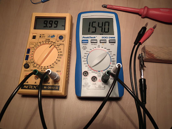 Übrigens nochmal was für den Hausgebrauch: Man kann man diese extrem hohen Widerstände sehr einfach mit einem normalen Multimeter messen, auch wenn es gar keinen Bereich dafür hat.