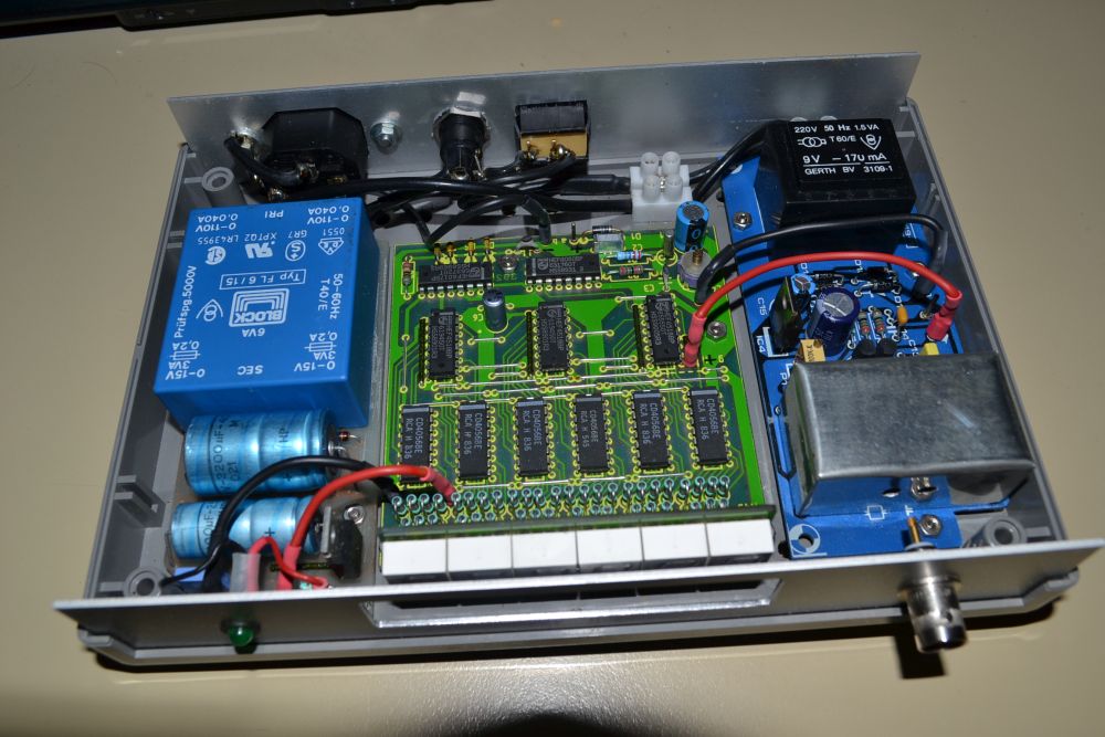Ich habe aus einem Nachlaß ein fast fertiges Gerät geschenkt bekommen. Ich vermute, dass es sich um einen Frequenzmesser handelt. Das Gerät ist sehr schön aufgebaut und bis auf den BNC Anschluss fertiggestellt. Kennt jemand anhand des Fotos diese Schaltung und kann mehr dazu erzählen? Als Anzeige wurden 6 Stück Segment Ledblöcke verwendet. Über eure Beiträge würde ich mich freuen.