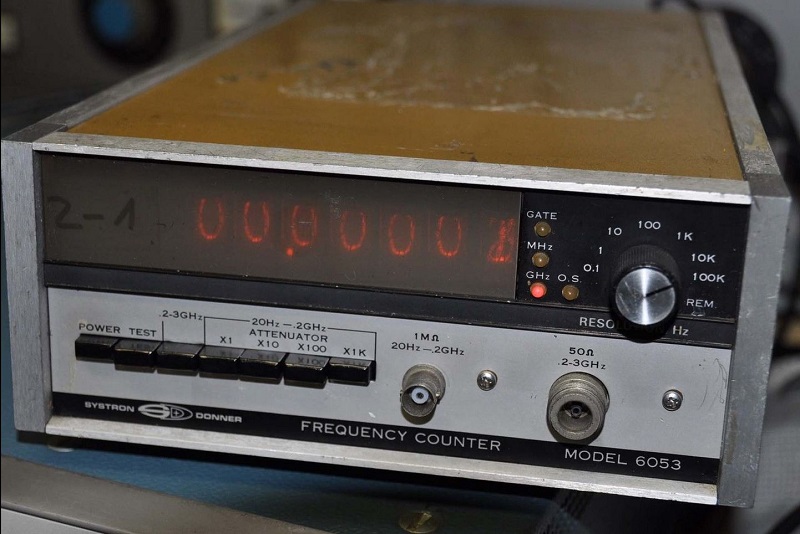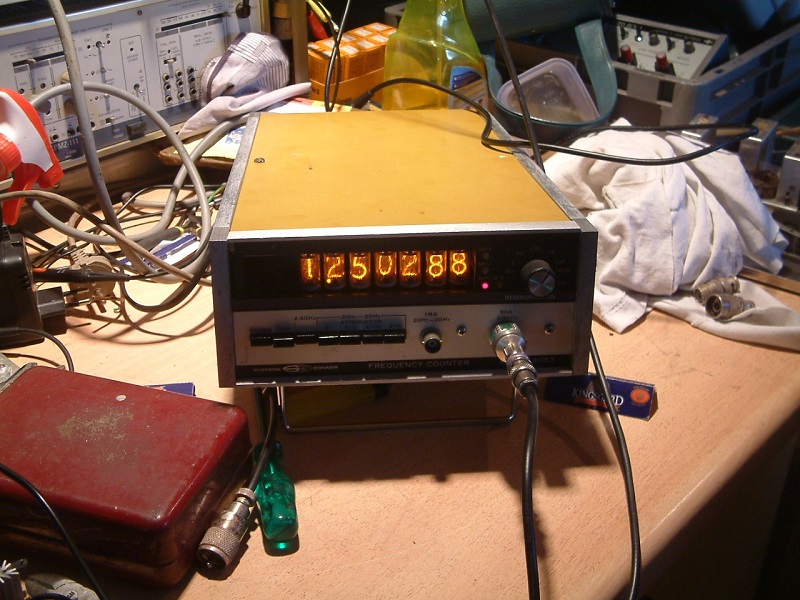 er hatte eine defekte Nixieröhre. Nach Austausch ist er nun putzmunter. Eine Überprüfung mit dem SWOB ergab daß er auch UHF, es ging bis über 1,25 GHz hinauf, problemlos auszählt. Also alt - aber gut !