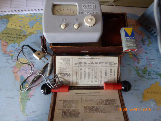 Ansonsten scheint es sich bei dem Feuchtemesser um ein Widerstandsmessgerät handelt; der Fehler sollte sich finden lassen.