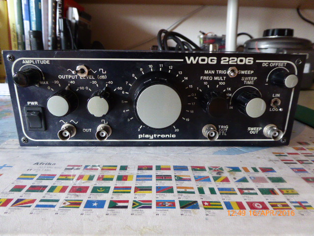 Eigentlich (und wirklich) kein Mess oder Prüfgerät, aber ich stells mal hier ein. Funktions und Wobbelgenerator PLAYTRONIC WOB2206. Wurde als Bausatz angeboten.