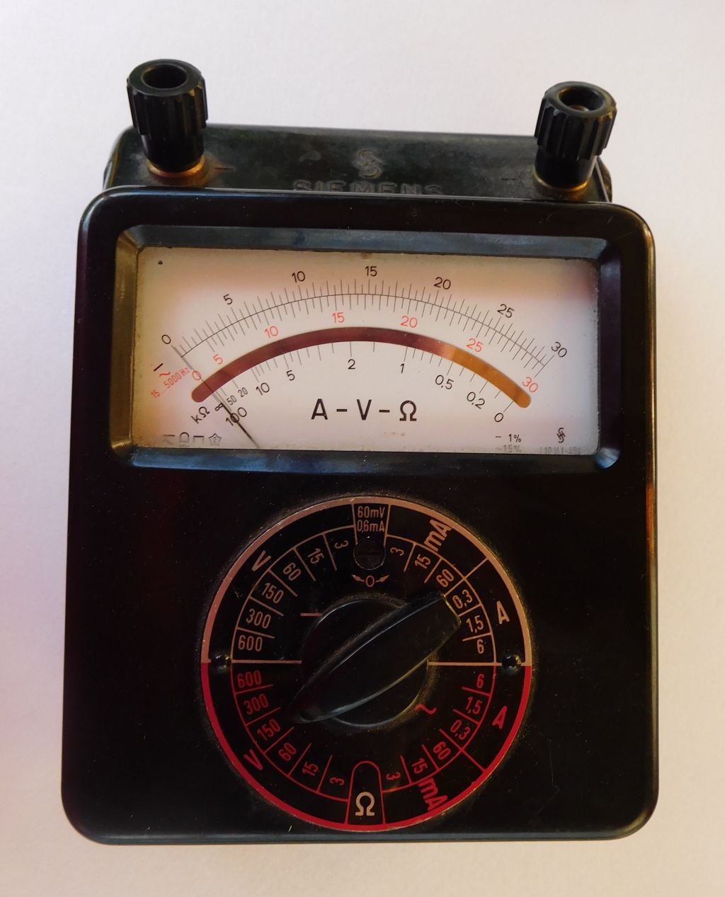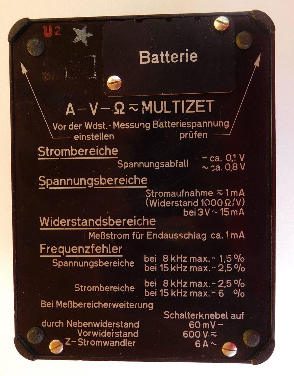 Ich bin mittlerweile auch (ein wenig) fündig geworden, was das dritte Gerät angeht. Hier braucht man eine 1,5V Batterie (AA) für Messungen bis 100Ohm sowie eine 15V Batterie (10F15) für bis 10kOhm. Das Konzernlogo auf dem Gerät soll von vor 1973 stammen. Auch von diesem Gerät gibt es noch unterschiedliche Typen. Mal sehen was ich da noch rausfinde.