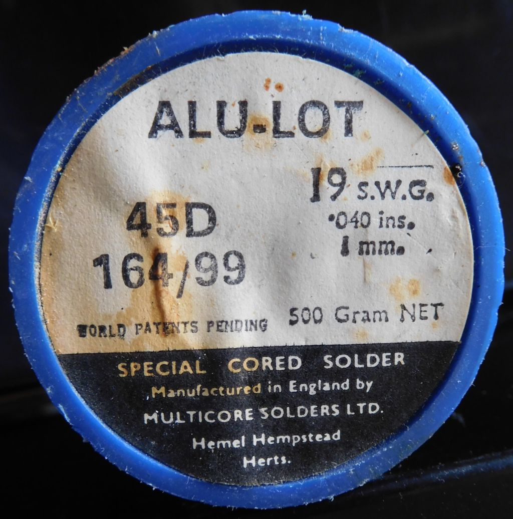 es gab(gibt?) auch noch Alu-Lötdraht, mit Flussmittel. Mit einem 60Watt Lötkolben liessen sich allerdings nur sehr dünne Alubleche verzinnen. Es reichte aber aus, um Massedrähte an Aluminium-Abschirm-Bleche zu löten. Beim löten spritzt dieses Lot, als wäre es eine Wunderkerze. Man sieht allerdings keine Flamme, nur Rauch der einem den Atem stocken lässt.