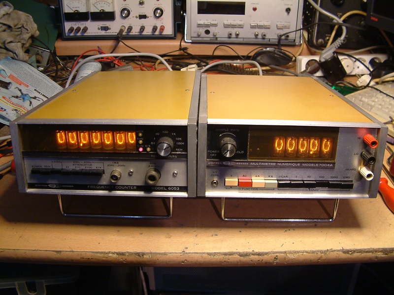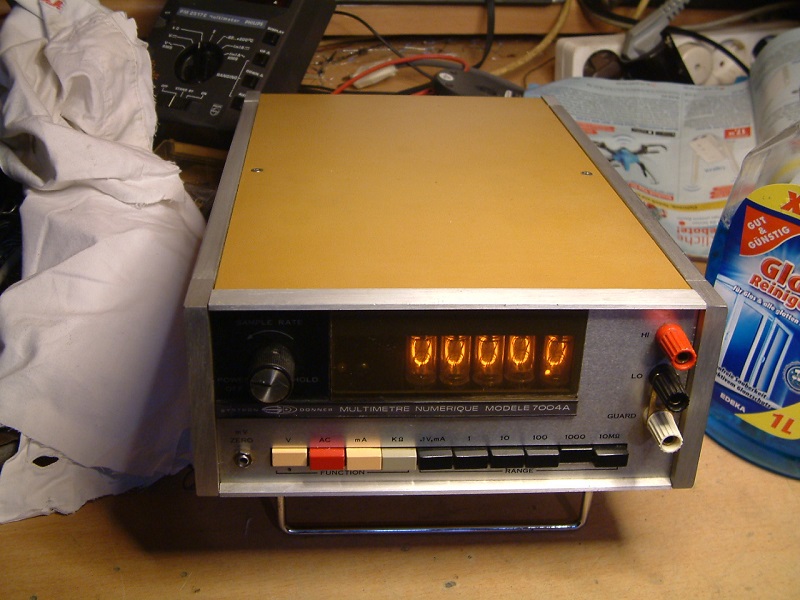 das ist ein Systron Donner Nixie Multimeter. Vom Schmutz der Vergangenheit befreit und zurechtgemacht Hergestellt bei Systron Donner in München, frühe 70er Jahre. Die Fa. selbst ist aus USA, war hier aber recht munter mit wertig gebauter Messtechnik und Labornetzteilen, stellt heute aber andere Dinger her, zB Gyratorsysteme