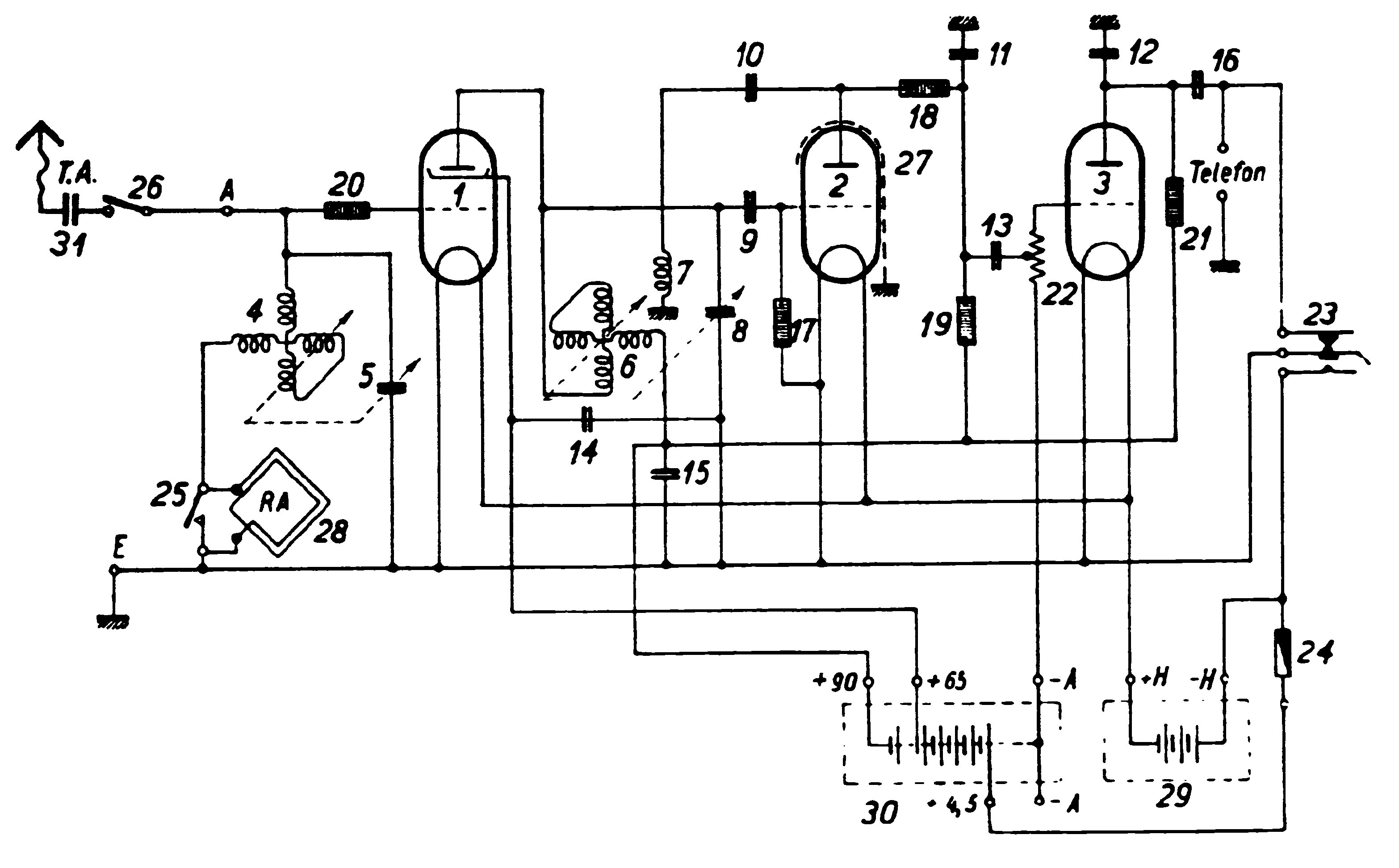Messgerät-Art: Tragbarer Geradeausempfänger für MW und LW 200-2000 m. Anschluß für Kopfhörer Schaltung: Zweikreiser Röhren: 3 (RES 044, RE 084, RE 134)